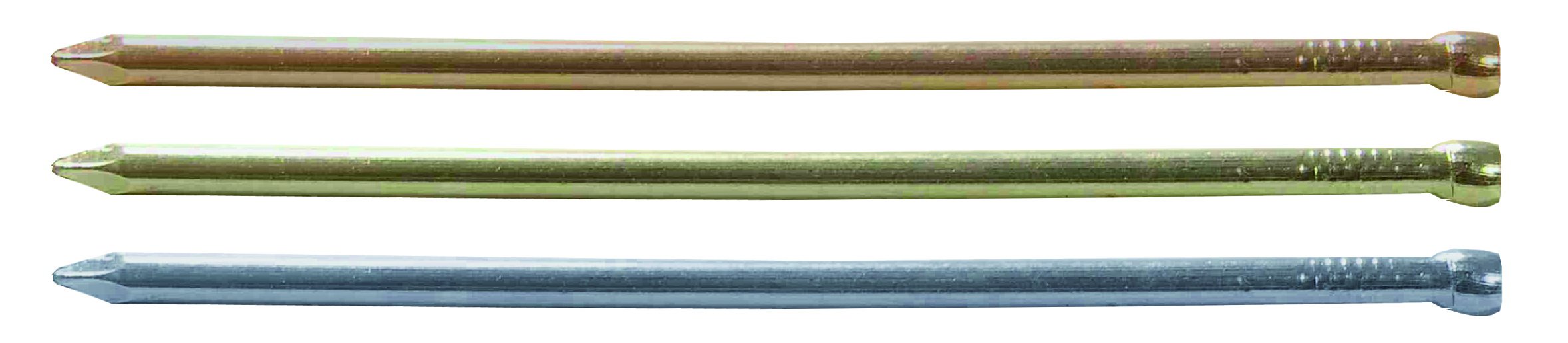 Гвоздь латунированный изготовлен из углеродистой стали и имеет антикоррозионное покрытие - латунирование |