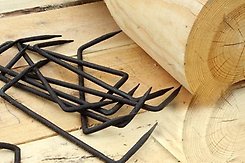 Скоба строительная.Скоба строительная применяется при сооружении дома из бревен или брусьев. С их помощью крепят лаги для настила полов и потолка, скрепляют стропила с верхним венцом сруба и между собой, усиливают крепление по углам нижних и верхних венцов сруба и т.д. Скоба строительная состоит из ножек и спинки. Концы ножек куются острыми в виде четыреугольных конусов. |