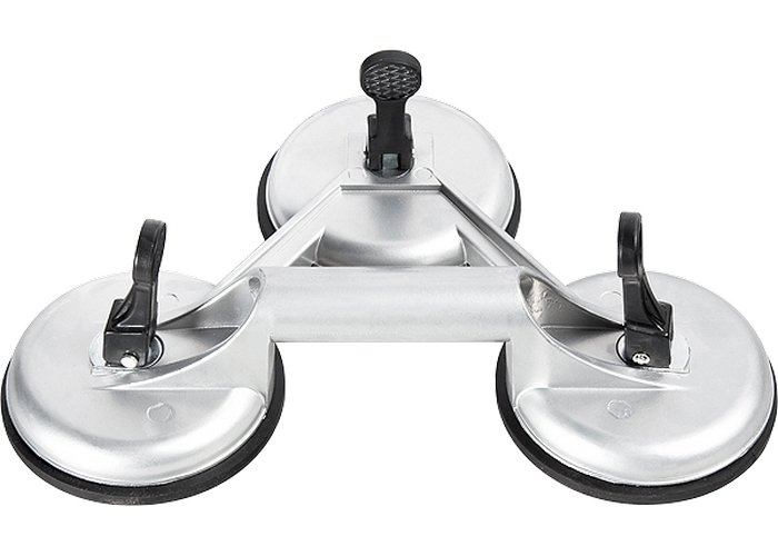 Изготовлен из алюминиевого сплава. Предназначен для работы с листовым стеклом и металлом. Надежная вакуумная фиксация присоски стеклодомкрата на стекле помогает переносить и устанавливать оконные стекла и стеклопакеты. 875205 – с двумя присосками, 875255 – с тремя. Грузоподъёмность двойного до 80 кг, тройного - до 100 кг.