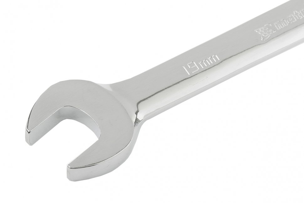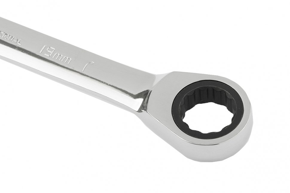 Количество Ключ изготовлен из высококачественной стали 40CrV1. Имеет хромоникелевое антикоррозионное покрытие. Твердость материала храпового механизма 58 HRс. Профиль накидной части ключа имеет 12 граней, что увеличивает площадь соприкосновения рабочих поверхностей и снижает риск деформации граней крепежа при монтаже. В кольцевой профиль ключа установлен специальный храповый механизм (трещотка) с 72 зубцами, который обеспечивает легкий ход инструмента, быстрый и удобный монтаж резьбовых соединений. Минимальный угол поворота ключа 5 градусов. Ключ гаечный комбинированный с трещоткой предназначен для эффективного откручивания или закручивания болтовых соединений.
