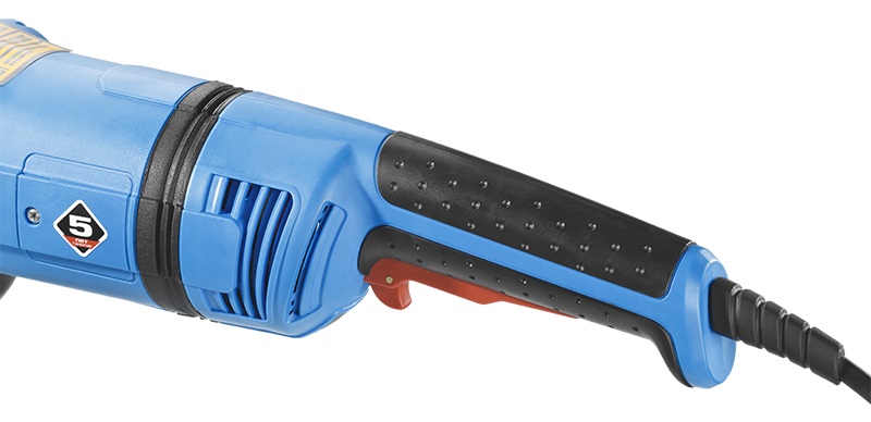 - Широкий эргономичный выключатель с пылезащитой, блокировкой включения, а также фиксацией во включенном положении